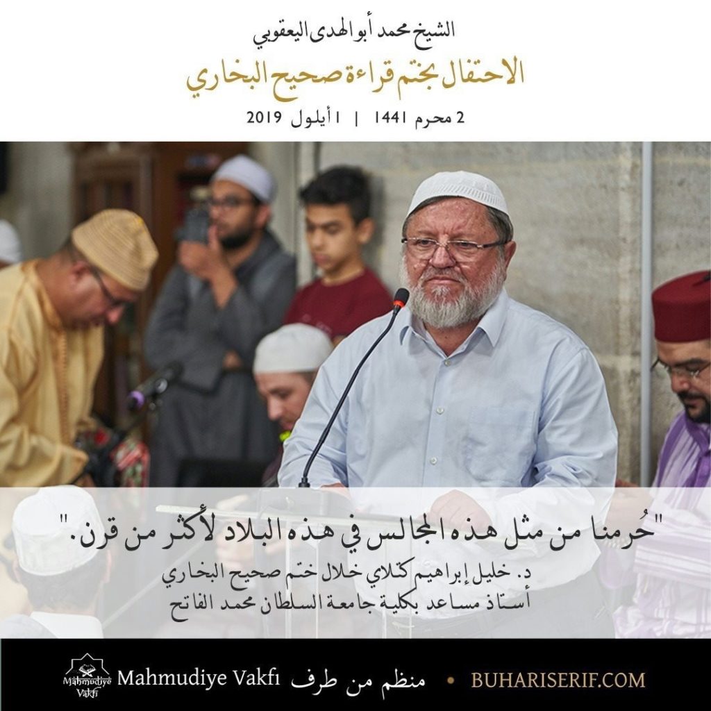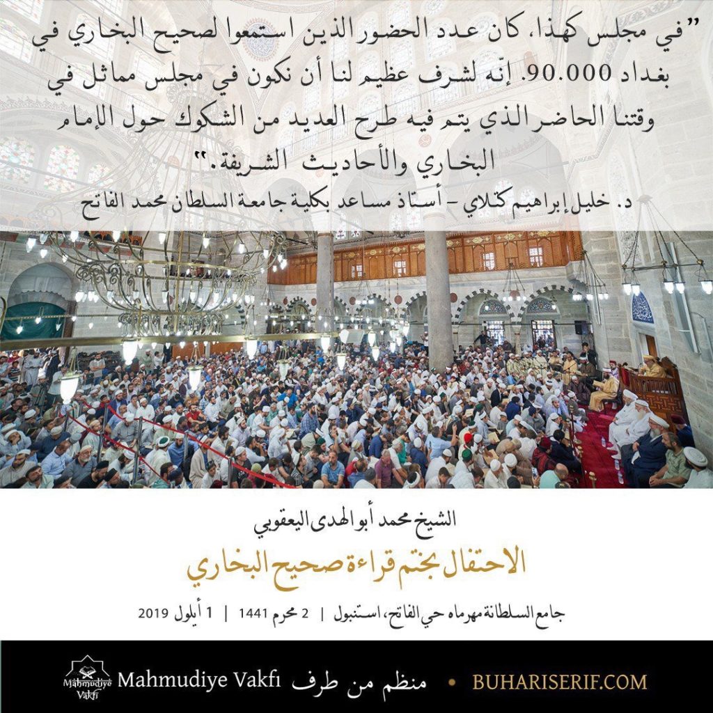 "في مجلس كهذا، كان عدد الحضور الذين استمعوا لصحيح البخاري في بغداد 90.000. إنه لشرف عظيم لنا أن نكون في مجلس مماثل في وقتنا الحاضر الذي يتم فيه طرح العديد من الشكوك حول الإمام البخاري والأحاديث الشريفة."