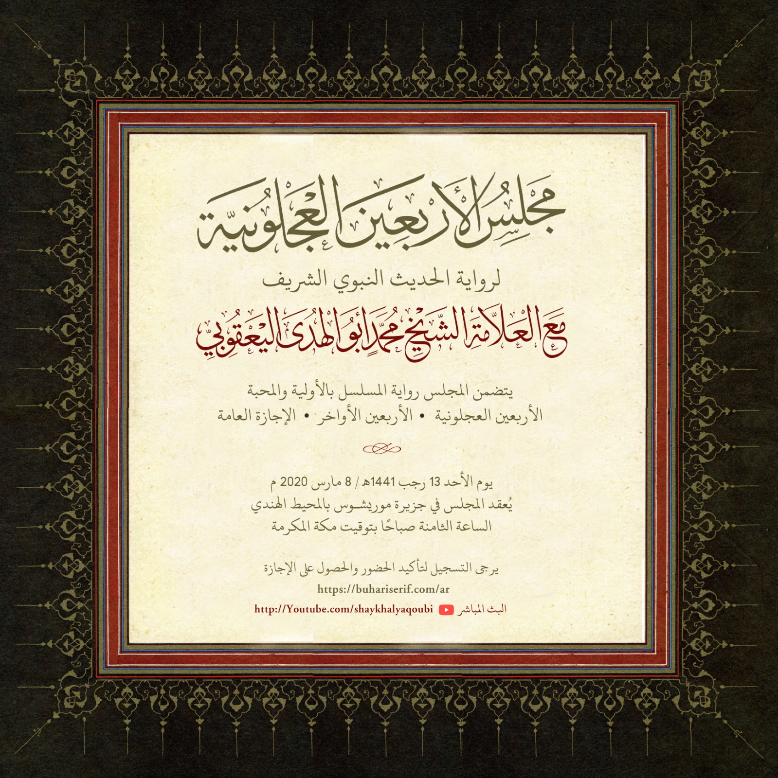 كي يحصل الطالب على الإجازة في الحديث الشريف والشهادة بسماع الكتاب ، ينبغي له أن يحضر المجلس مدة ١١ يوما دون غياب أو انقطاع.